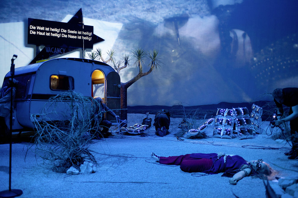 Regie Tomas Schweigen Mit Philippe Graff, Vera von Gunten, Silvester von Hösslin, Martin Hug, Zoe Hutmacher, Jesse Inman, Joanna Kapsch und Tomas Schweigen, Stephan Weber, Demian Wohler Bühne Stephan Weber Video GER GER Licht Demian Wohler Kostüme Anne Buffetrille Musikalische Leitung Martin Gantenbein Beleuchtung Anton Hoedl Studiomusiker Heinz Bohrer, Martin Gantenbein, Boots Studioaufnahme Sonarsound Studios Phil Erdin Dramaturgie Anja Dirks Regieassistenz Martha Marx Bühnenassistenz Giovanna Bolliger Kostümassistenz Karen Petermann