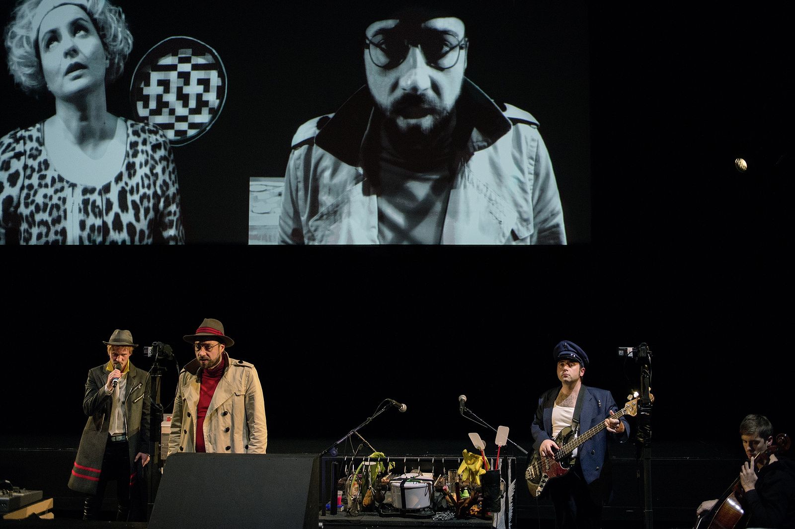 Regie Tomas Schweigen Mit Philippe Graff, Vera von Gunten, Silvester von Hösslin, Jesse Inman, Mareike Sedl und Stephan Weber, Demian Wohler Bühne Stephan Weber Video Demian Wohler Kostüme Anne Buffetrille Musikalische Leitung Martin Gantenbein Sound Design Jacob Suske Licht Anton Hoedl Dramaturgie Martin Wigger Regieassistenz Rebekka David Bühnenassistenz Giovanna Bolliger Kostümassistenz Karen Petermann