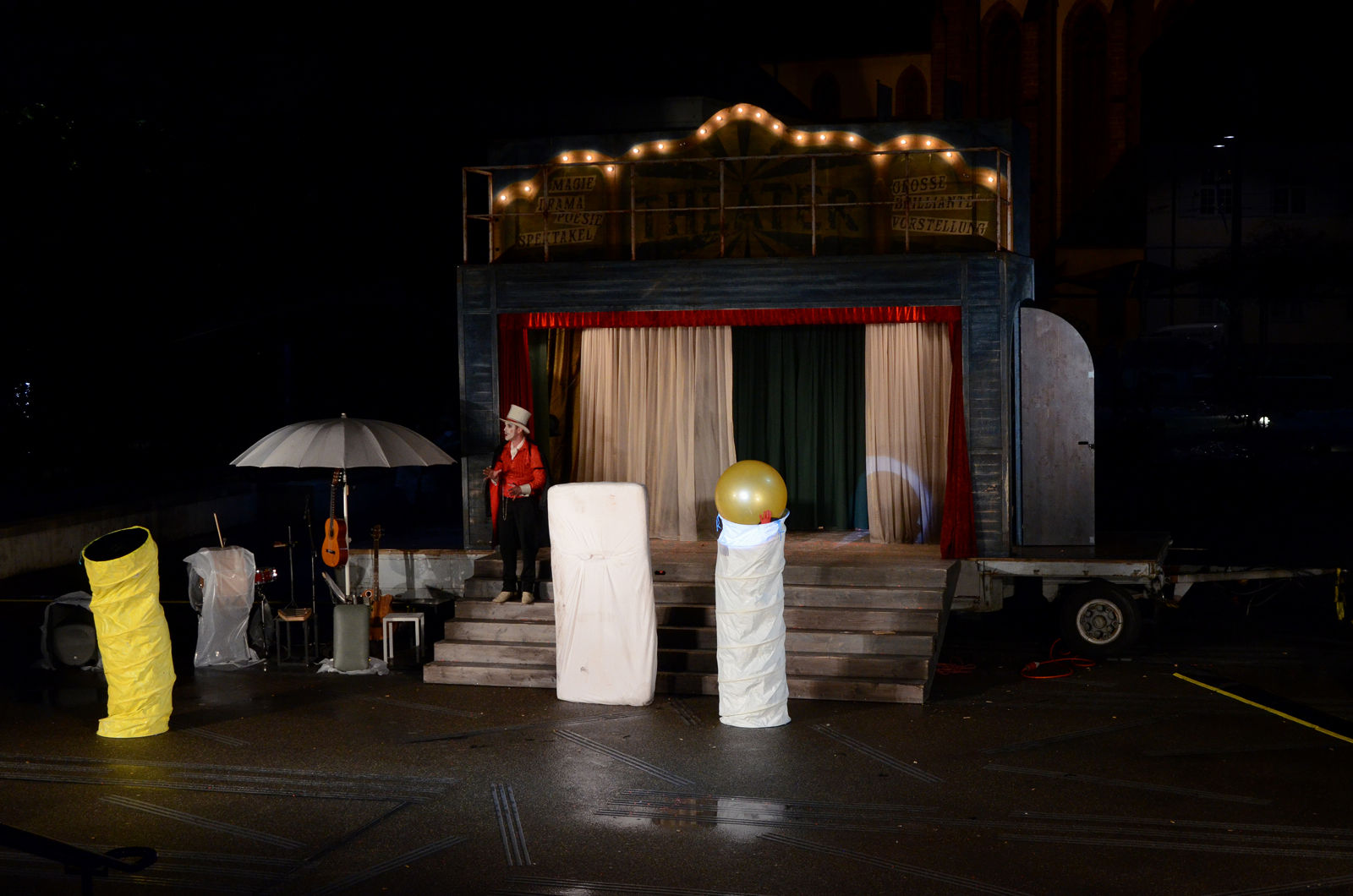 Mit der letzten Premiere in dieser Saison verlässt das Schauspiel des Theater Basel nicht nur die festen Mauern des Theaters, sondern reisst die Grenzen ein zwischen der „hohen“ und der „unterhaltenden“ Kunst und eröffnet die Stadttheater-Schaubude am Tinguely-Brunnen.