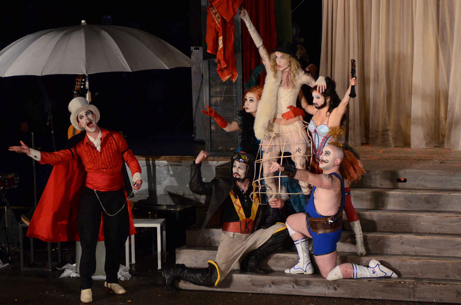 Künstlerische Leitung Tomas Schweigen Regie Jan-Christoph Gockel, Nina Mattenklotz, Markus Heinzelmann, Massimo Rocchi Mit Philippe Graff, Vera von Gunten, Silvester von Hösslin, Jesse Inman, Chantal le Moign, Johannes Schäfer, Mareike Sedl Bühne Stephan Weber, Demian Wohler Kostüme Anne Buffetrille Musikalische Leitung Martin Gantenbein Licht Anton Hoedl Dramaturgie Eva Böhmer Regieassistenz Lea Ralfs Bühnenassistenz Angi Paz Soldan Kostümassistenz Karen Petermann
