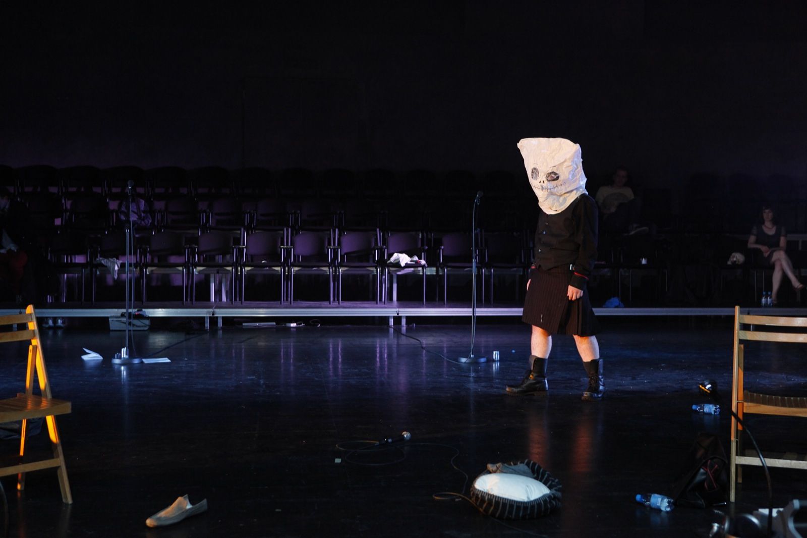 „... nun legt es (Ensemble) entgegen aller theoretischer Überlegung doch los uns inszeniert für uns Hamlet. Zusammengestaucht, verdreht und grossartig! Auch wenn man sich hier redlich bemüht, dem Publikum zu vermitteln, am Stoff gescheitert zu sein, ist dies keinenfalls so. Das Verständis vom Scheitern als Chance – nein, als Methode – eröffnet diesem gigantischen Werk einen neuen Spielraum, welcher so viel fruchtbarer zu sein scheint als ein anderer Umgang mit der Materie.“