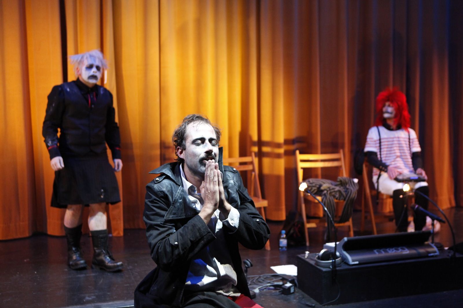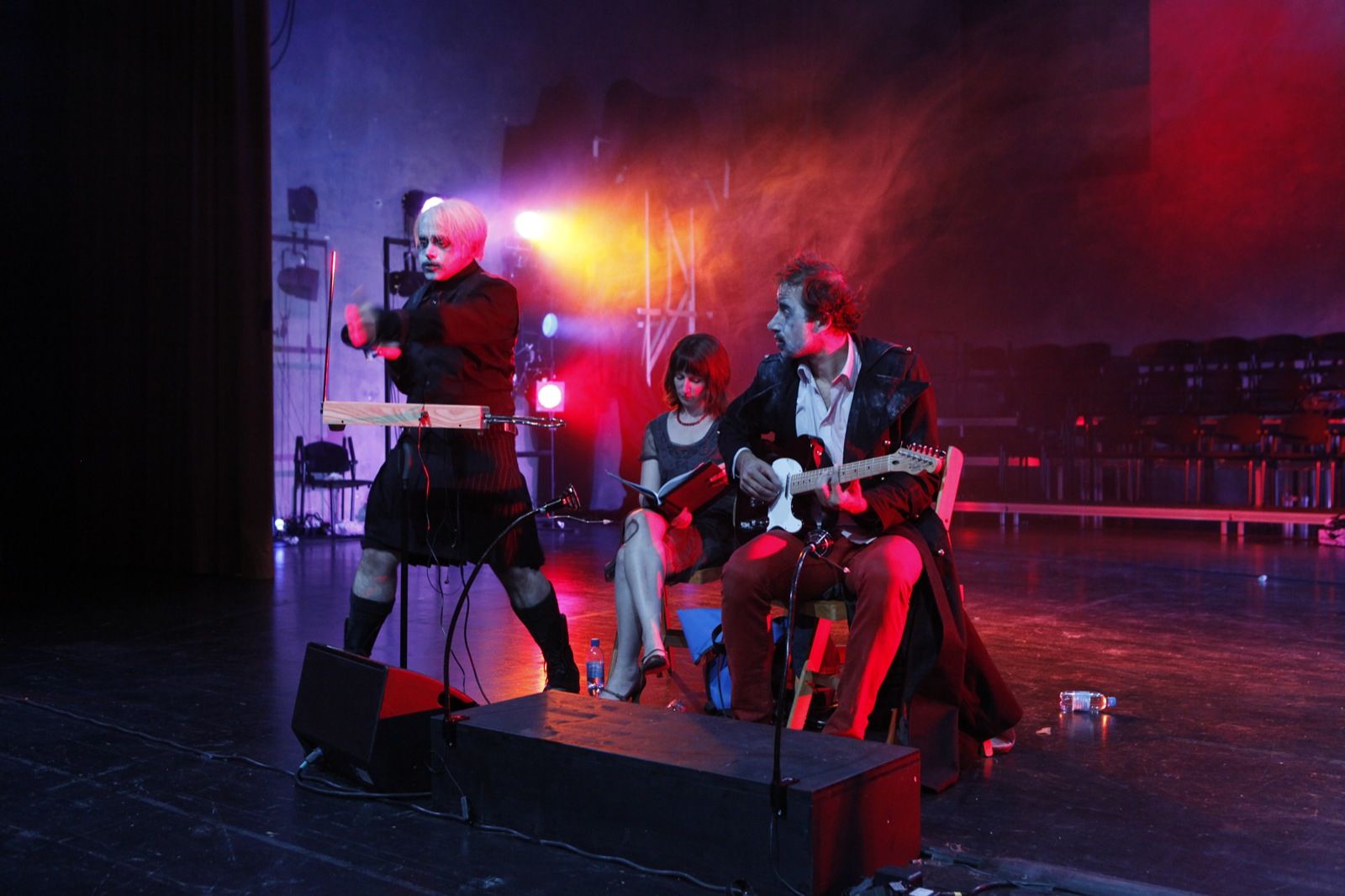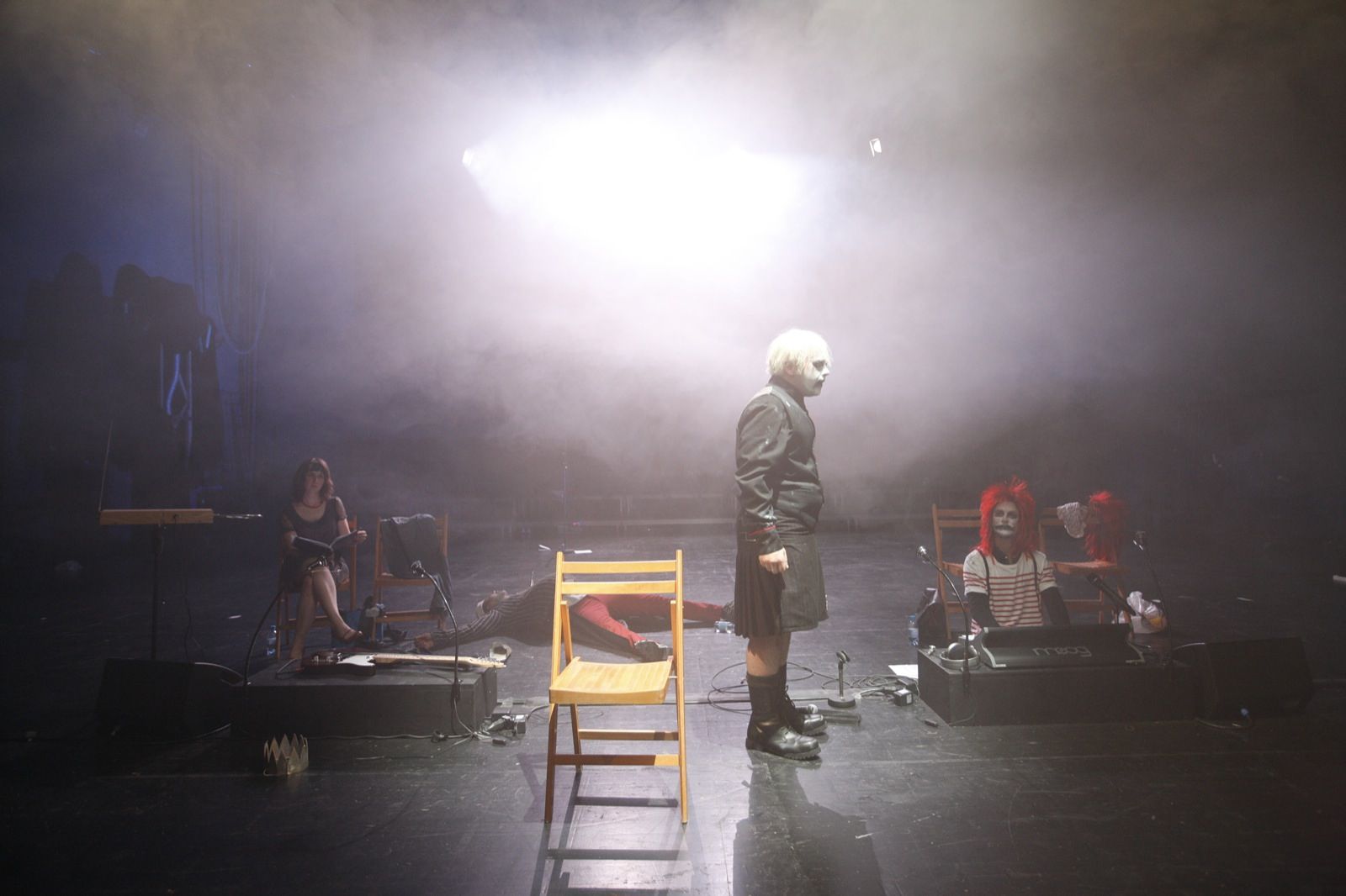 „Hamlet, anschliessend Publikumsgespräch“ heisst der Abend im Zürcher Theaterhaus Gessnerallee, der damit beginnt, dass die Mitglieder von FAR A DAY CAGE als Karrikatur iherer selbst über die Arbeit an einer Hamlet-Inszenierung berichten, die wir gerade gesehen hätten – das macht Spass.“